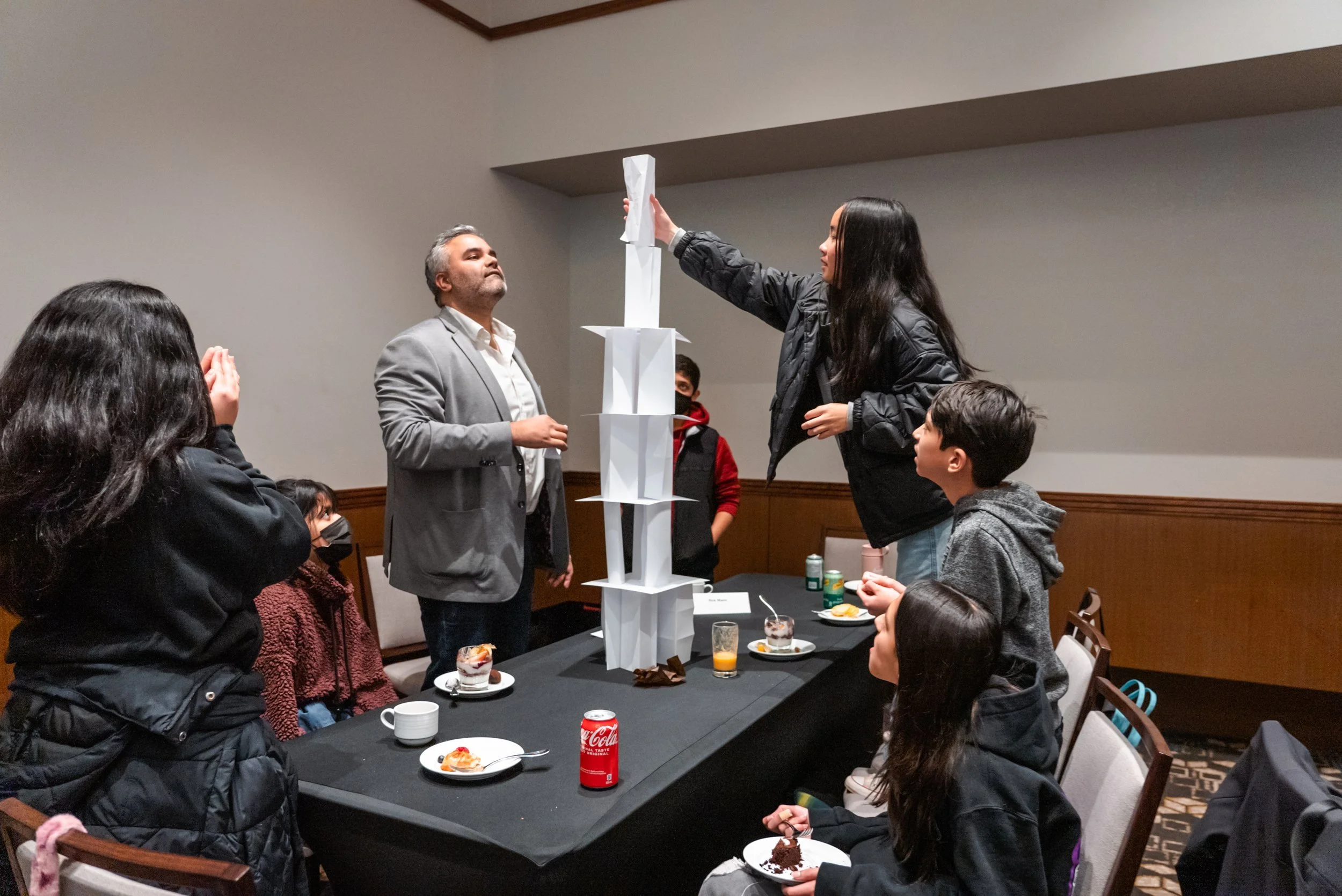 I arrived at the event excited to watch the students connect with, learn from, and be inspired by the guest mentors that came from a myriad of industries. Practically speaking, the students were split up into 10 groups with one mentor at each table. There was a team-building activity, a session for conversations between the students and mentors, and an ideation activity. The students participated in fun activities while exploring different entrepreneurial themes, including their own PowerPlay business ideas and products.